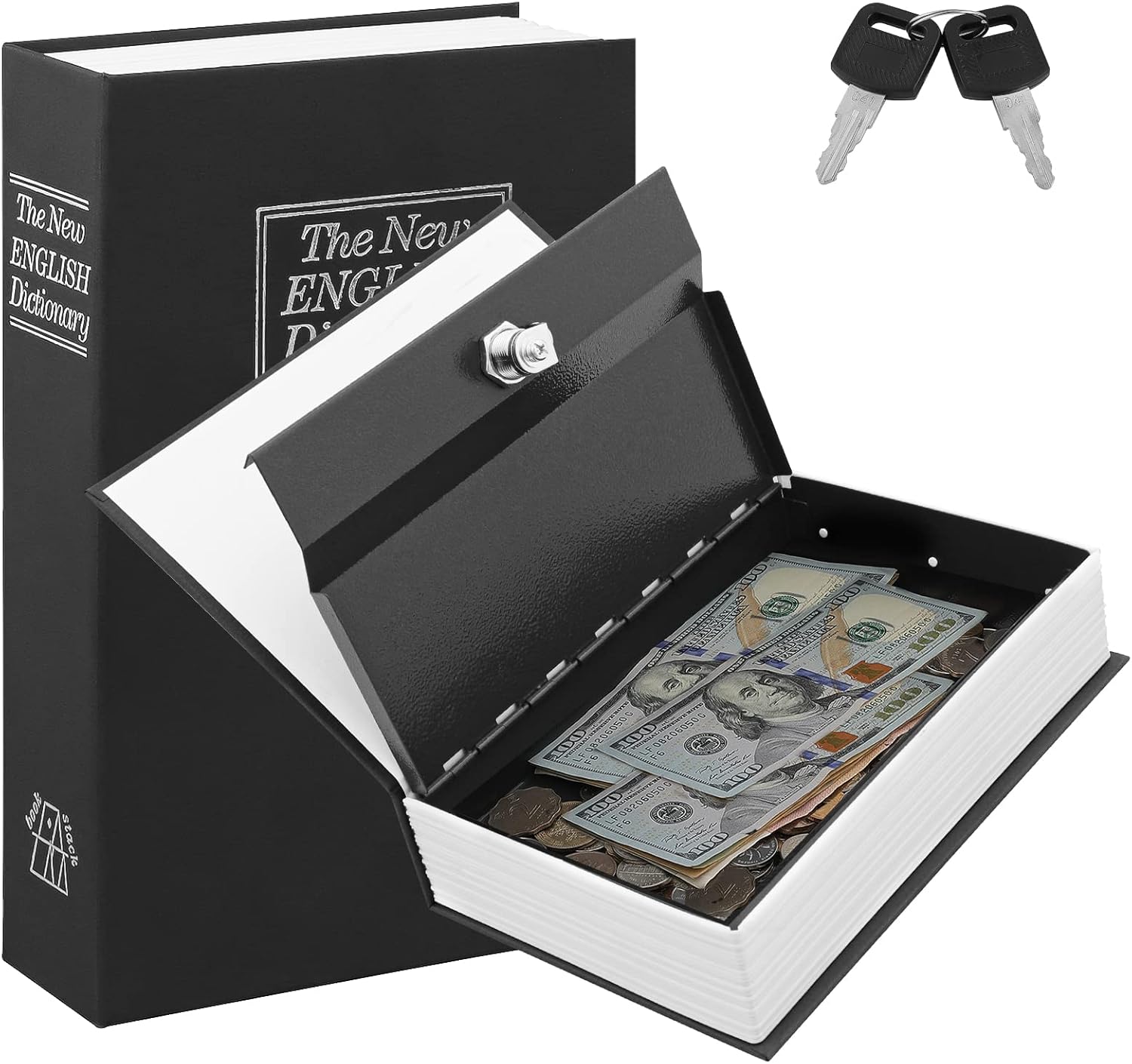 خزنة على شكل كتاب بقفل مفتاح، صندوق معدني محمول، خزنة سرية للكتب،