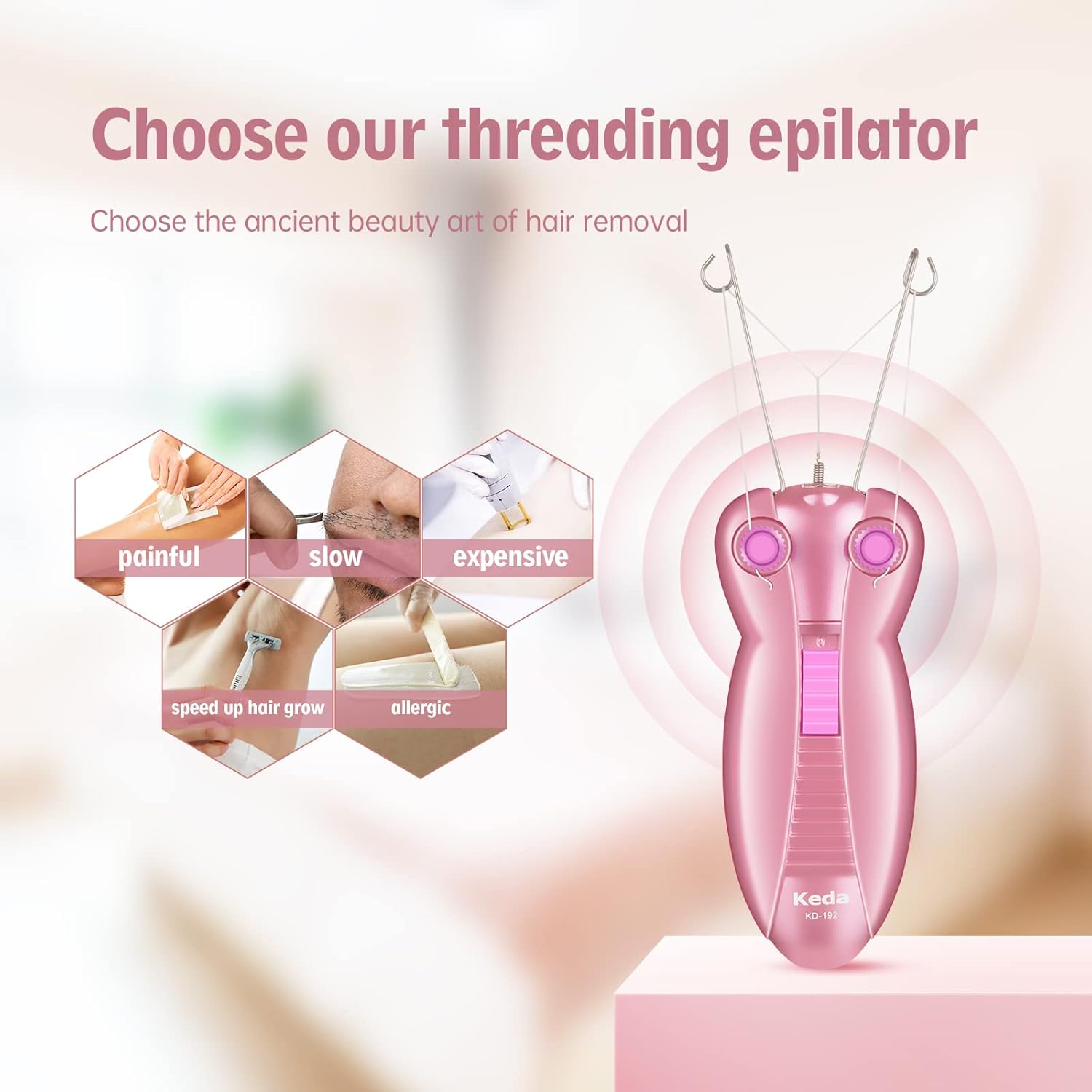 جهاز كهربائي لإزالة شعر الوجه بالخيط، جهاز إزالة الشعر الأوتوماتيكي لإزالة الشعر الناعم من الوجه والذقن والشفة العليا والذراعين
