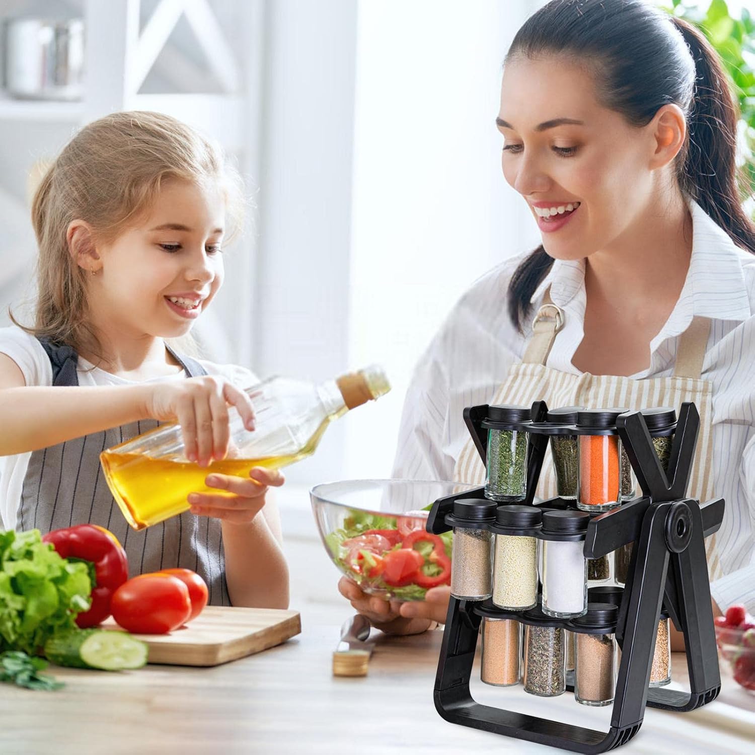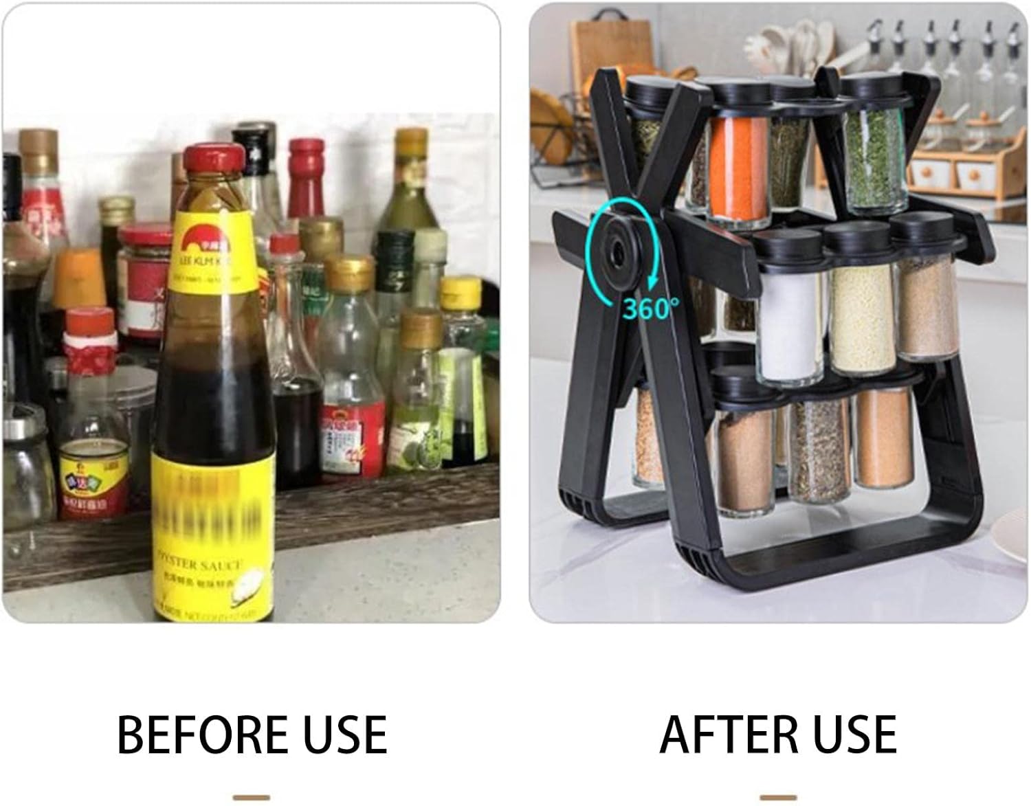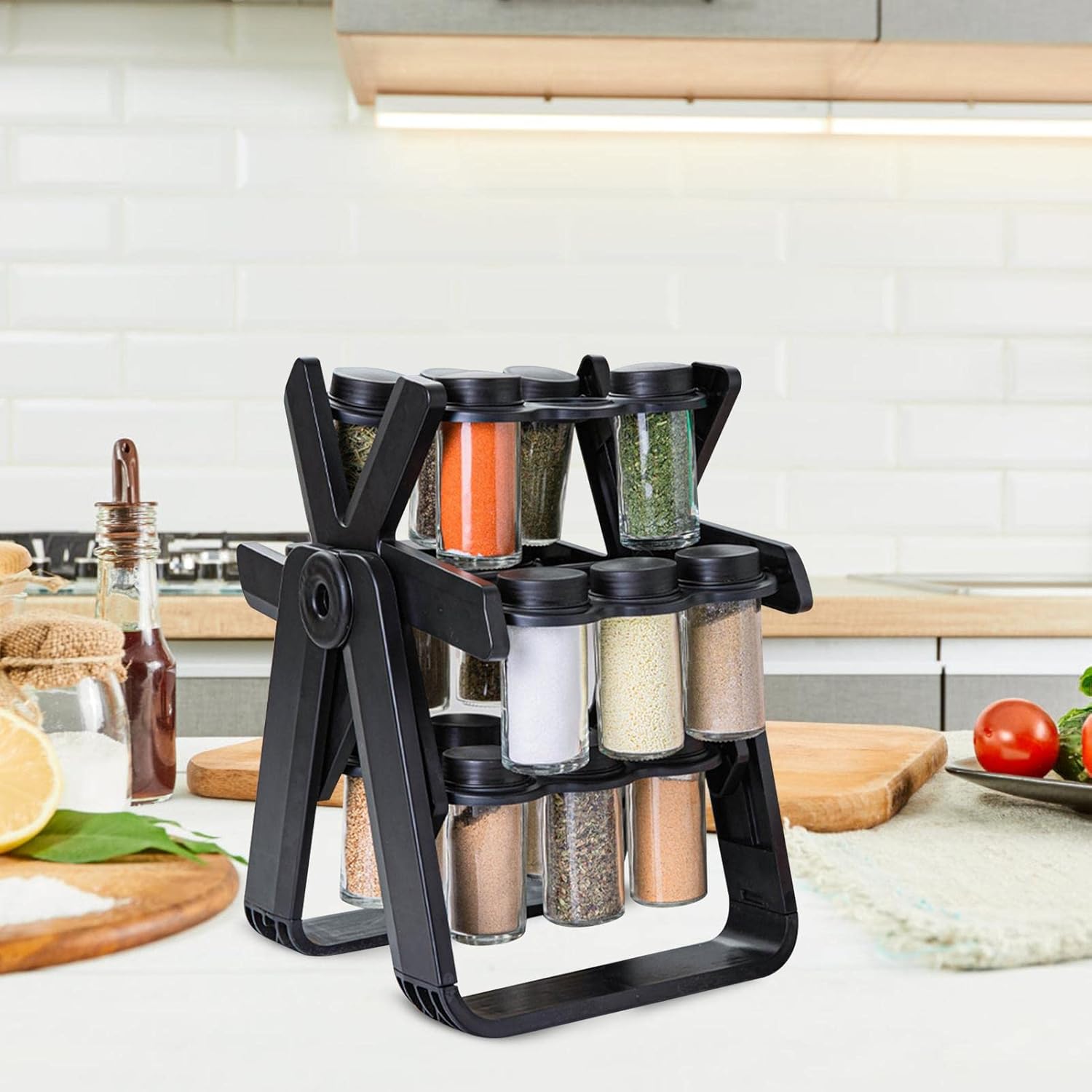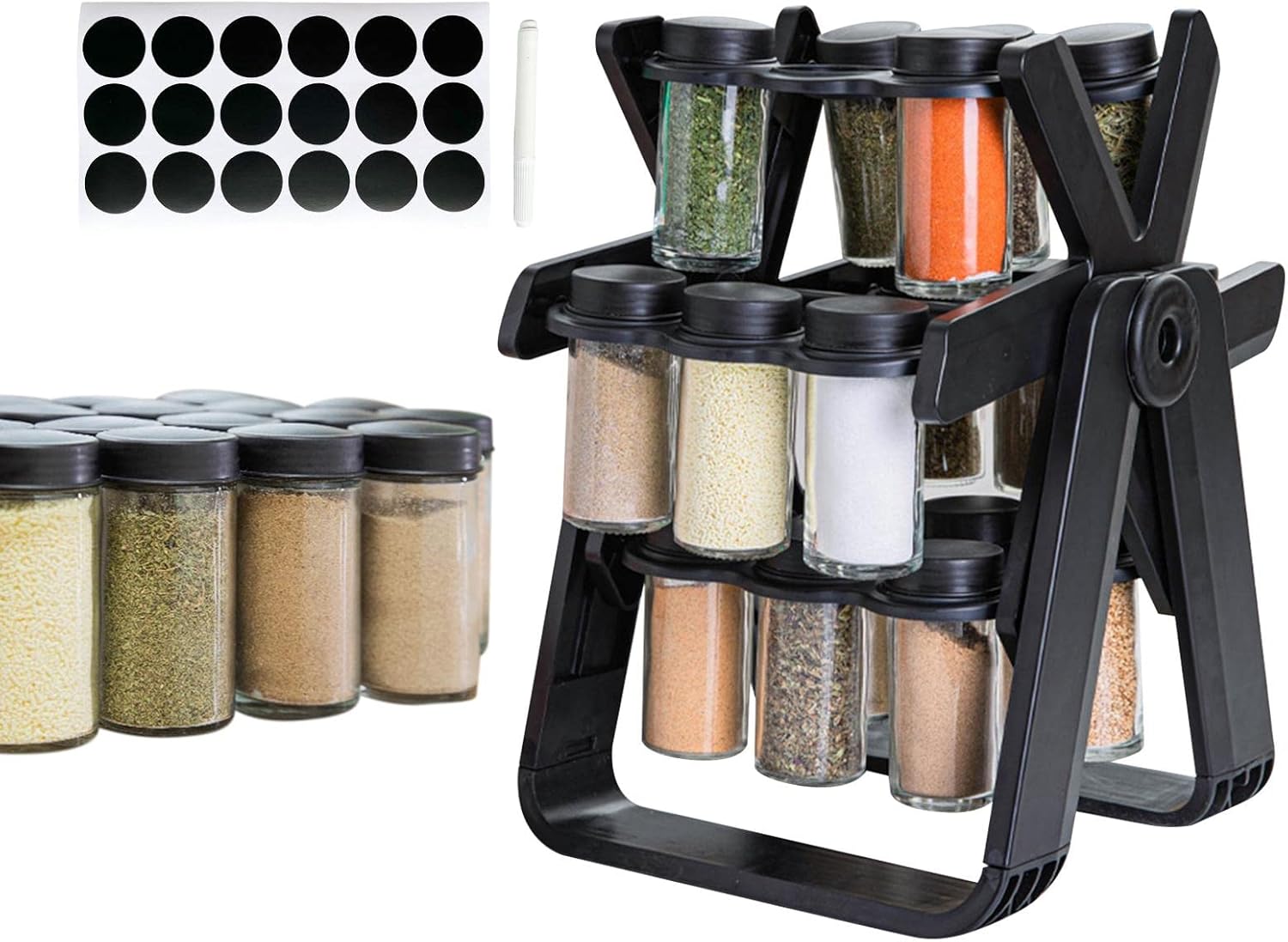 رف توابل دوار – منظم توابل دوار مع 18 برطمانًا | منظم مطبخ لتخزين برطمانات التوابل على سطح العمل وفي الخزائن
