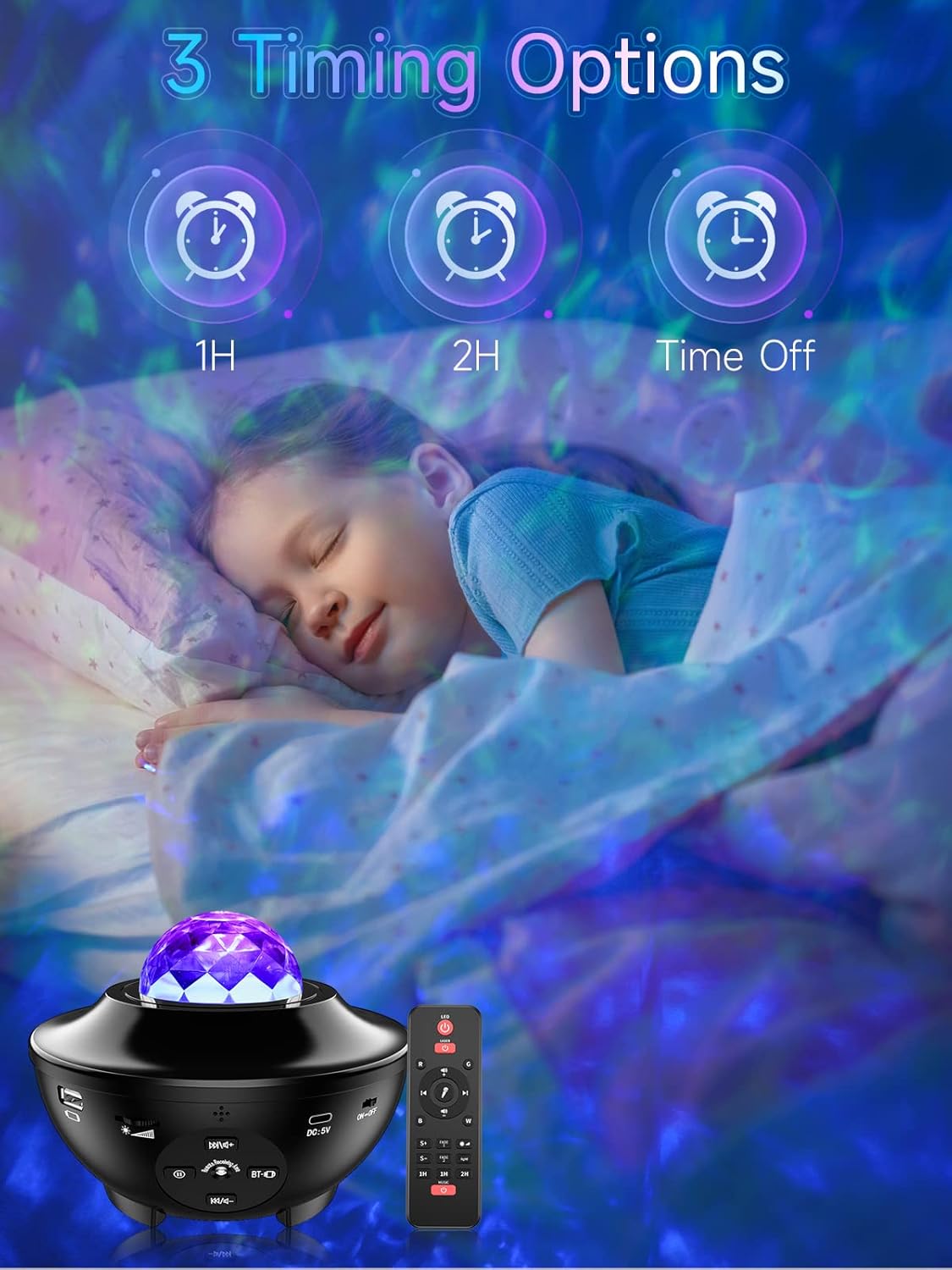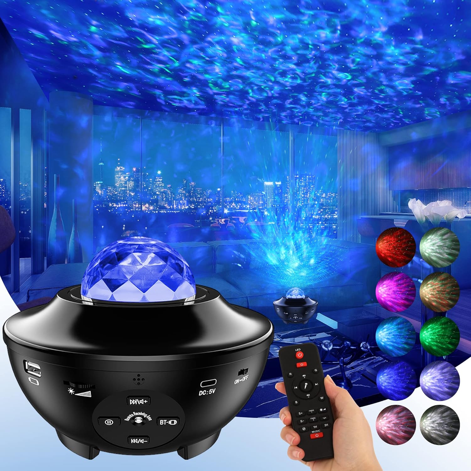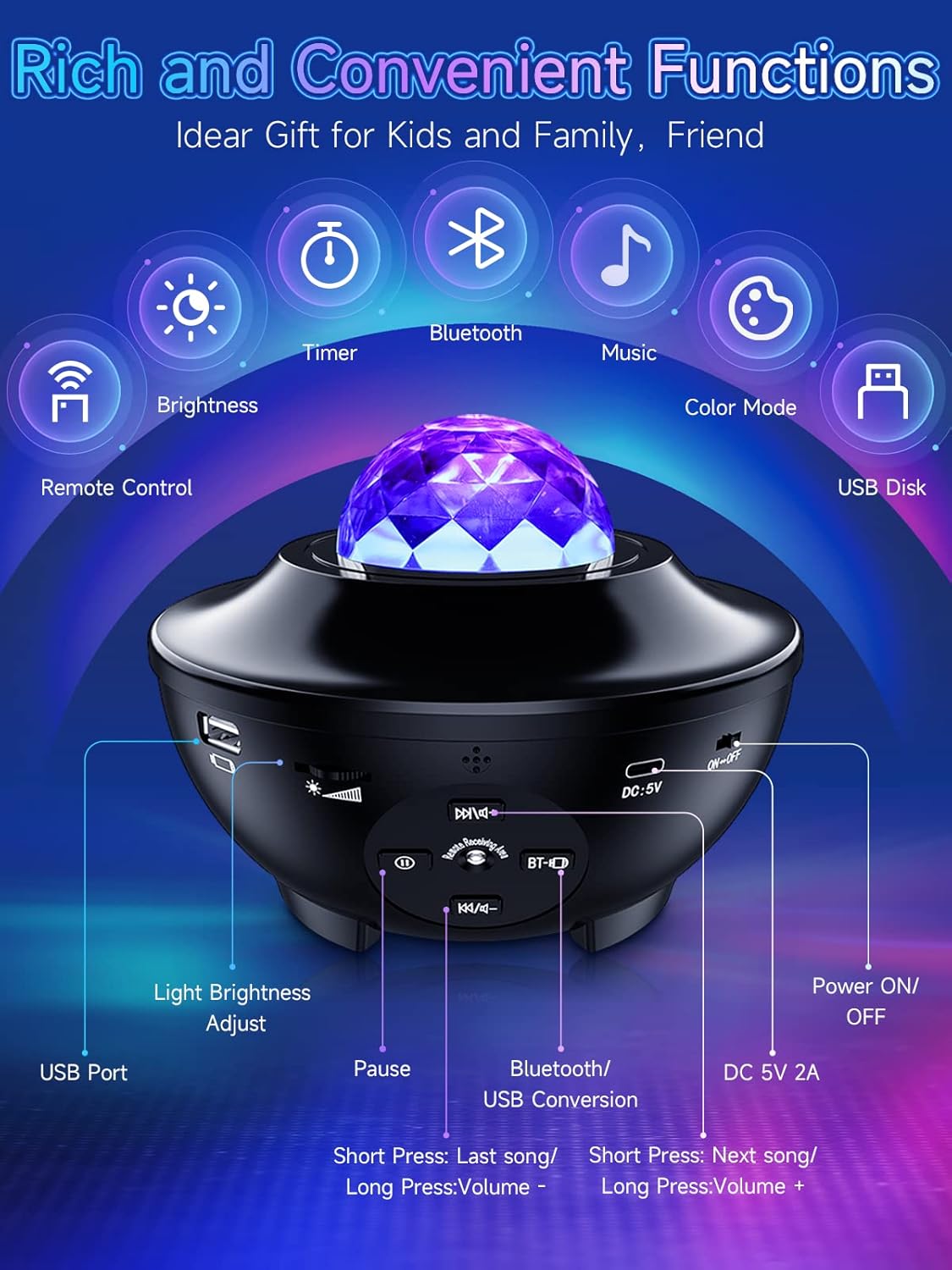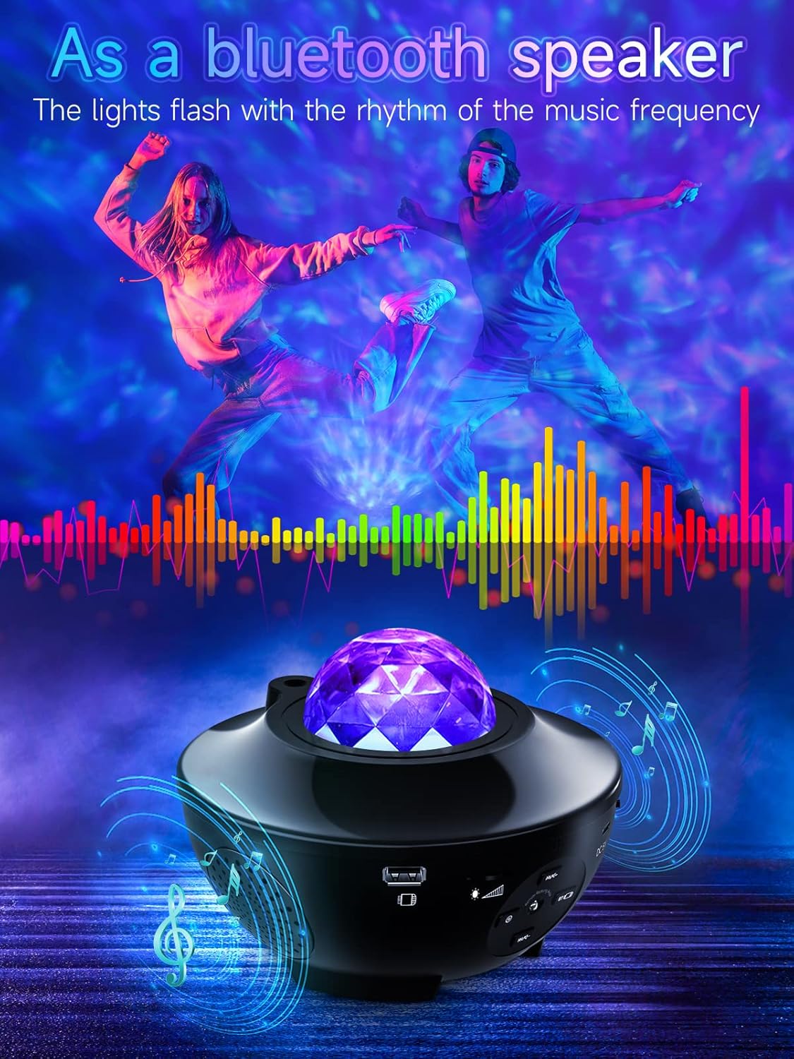 Projecteur LED ; rotatifs à 360° + Bluetooth Haut-parleur + 21 modes d'éclairage