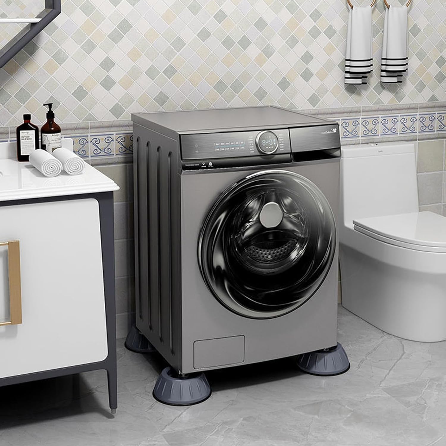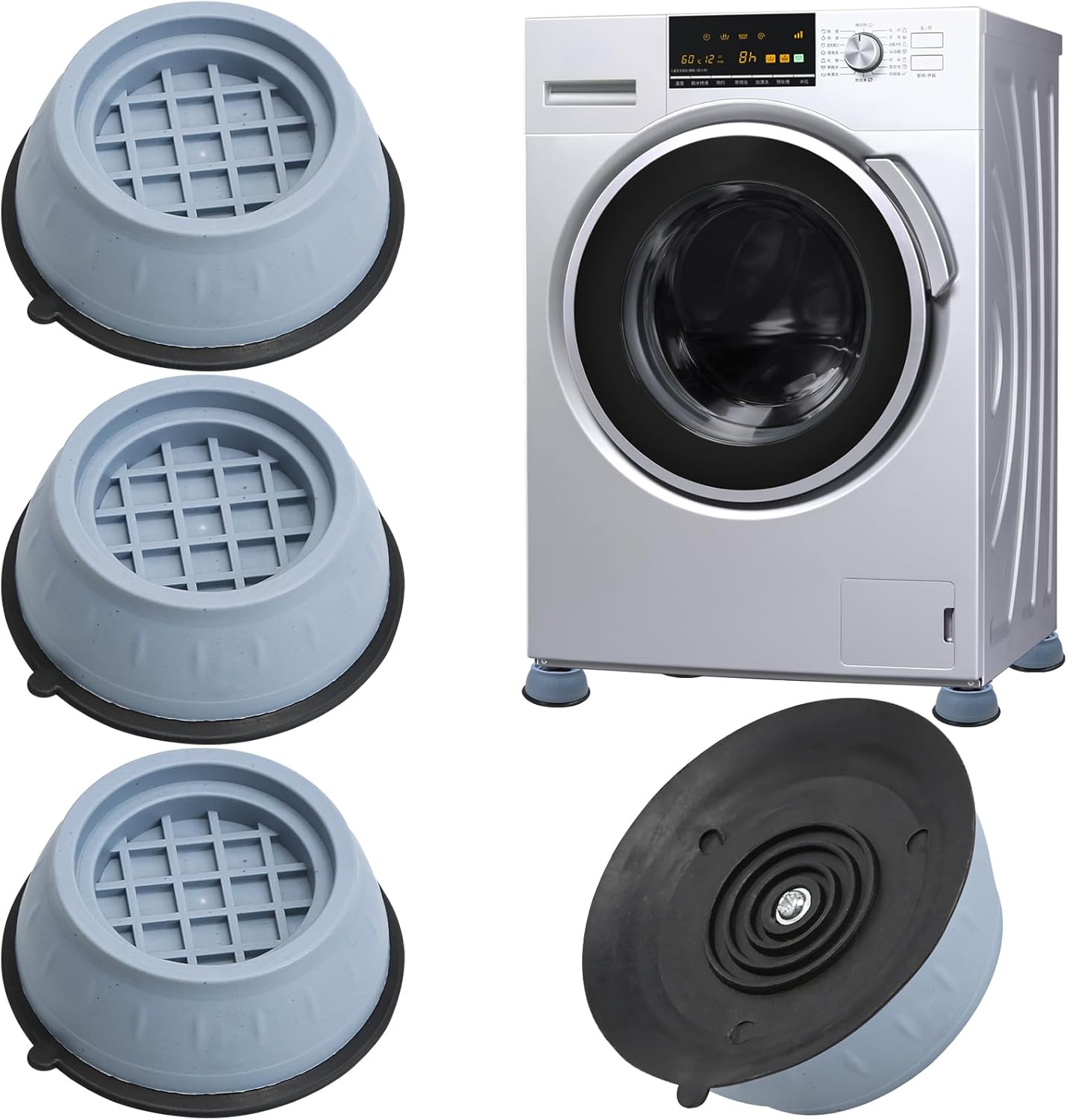 أقدام كلاسيكية بقطر 8 سم للغسالة مصنوعة من السيليكون عالي الجودة، مناسبة لمجموعة متنوعة من الغسالات، مانعة للانزلاق، مقاومة للماء، قابلة لإعادة الاستخدام.