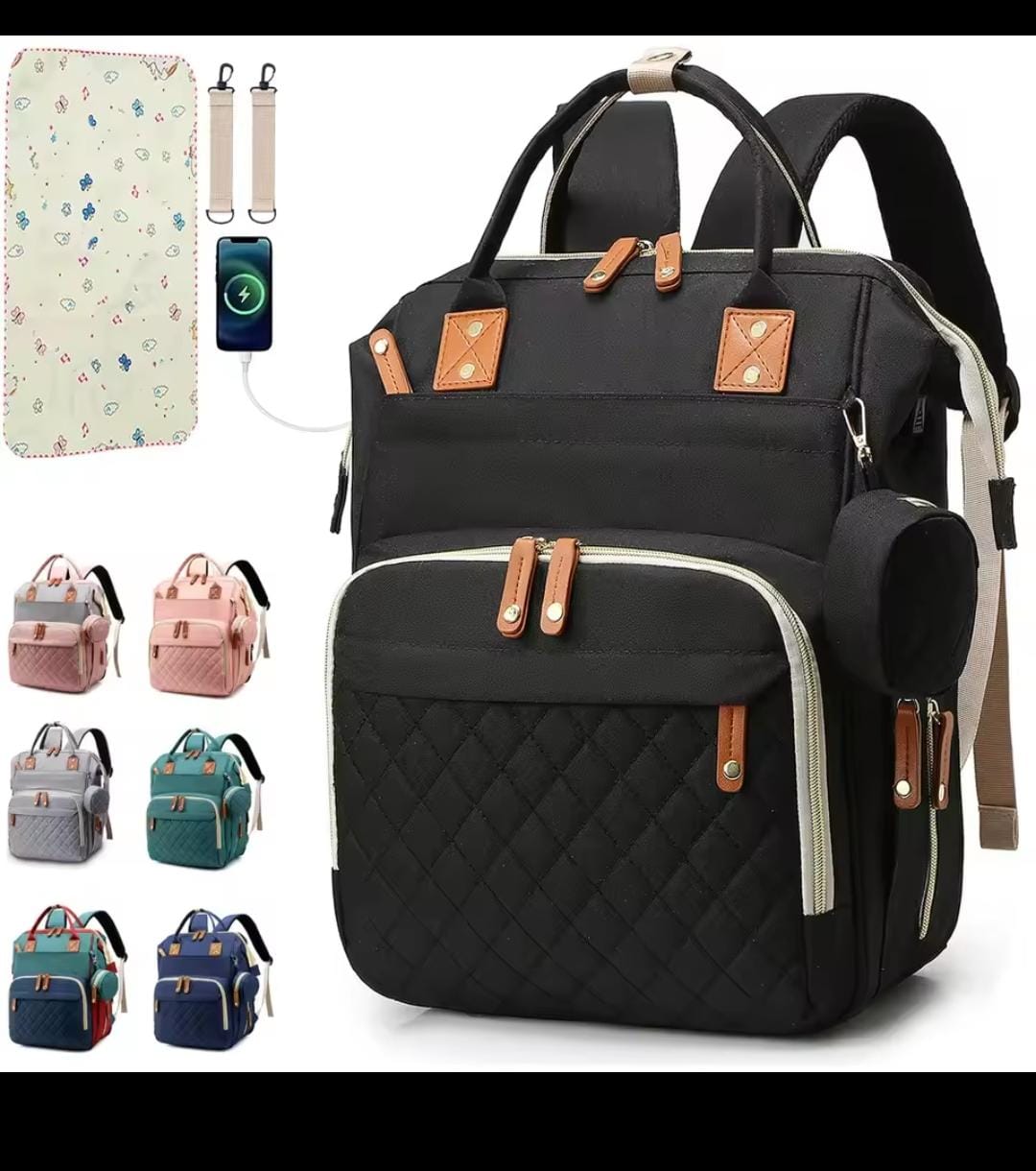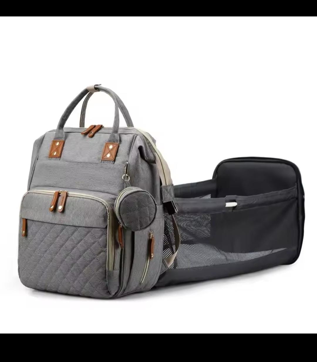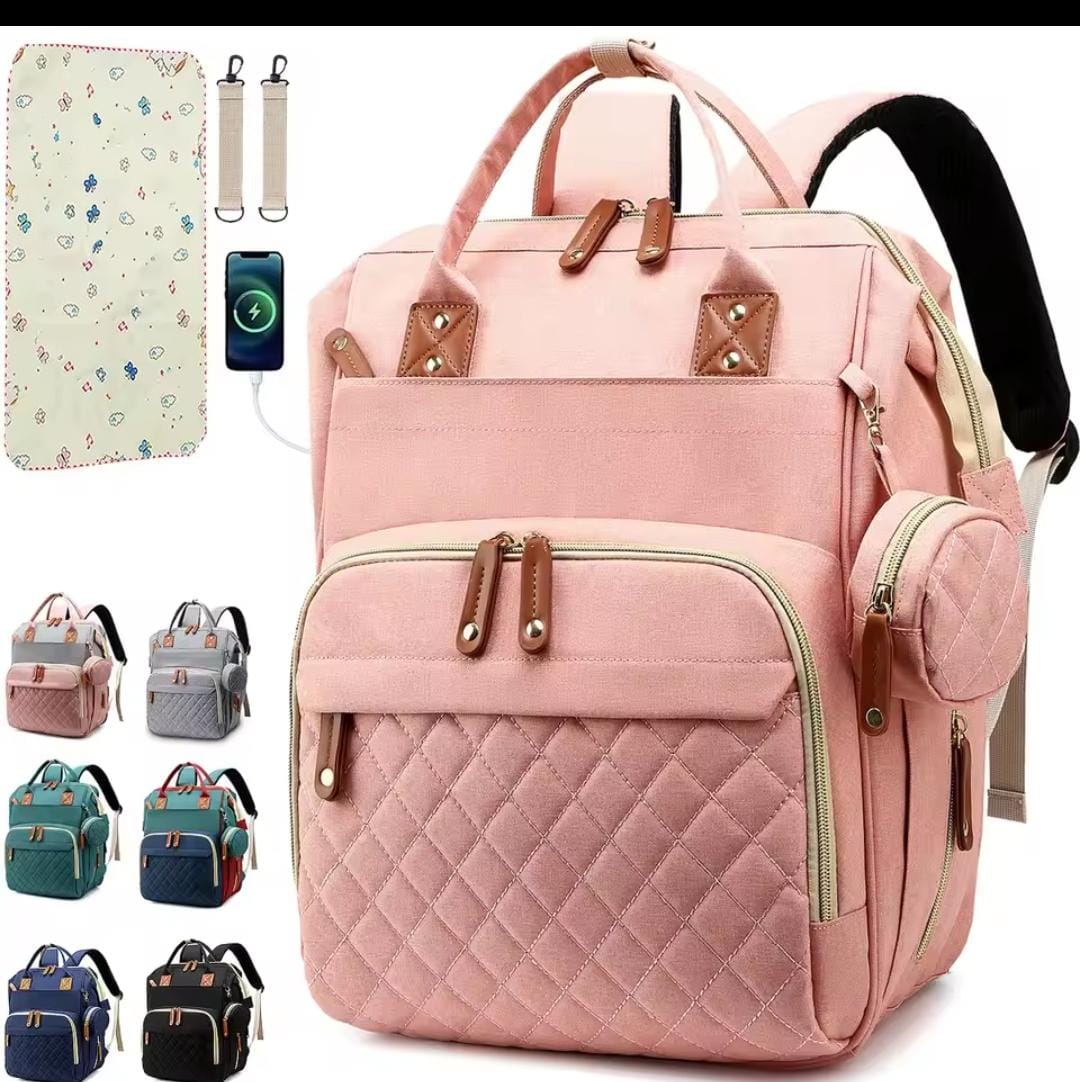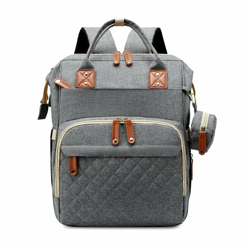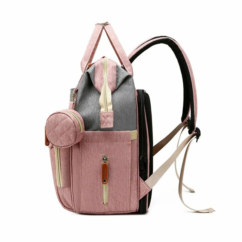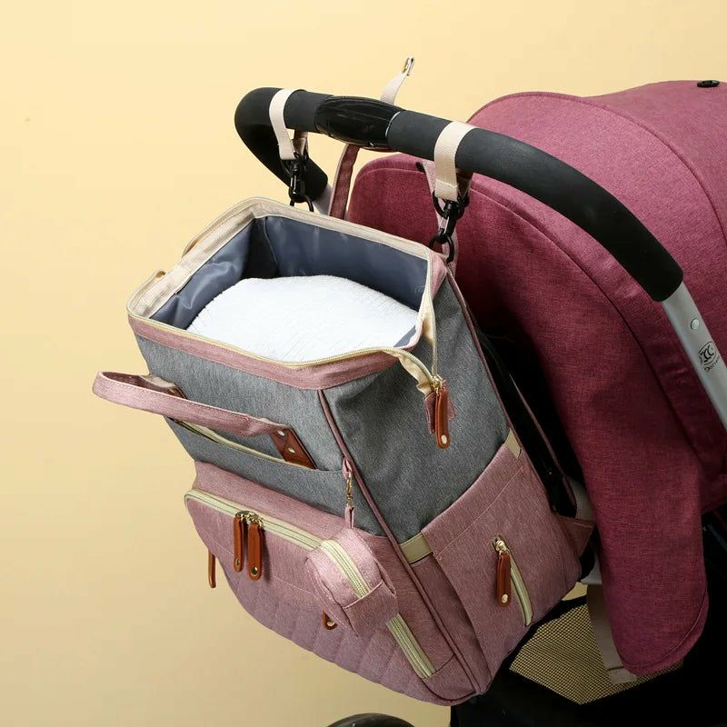 حقيبة ظهر للأمهات مزودة بسرير أطفال قابل للطي، ومرتبة ناعمة، وحقائب متعددة الاستخدامات للأمهات، وحقائب معزولة لتخزين زجاجات الرضاعة، ومنظم حفاضات.